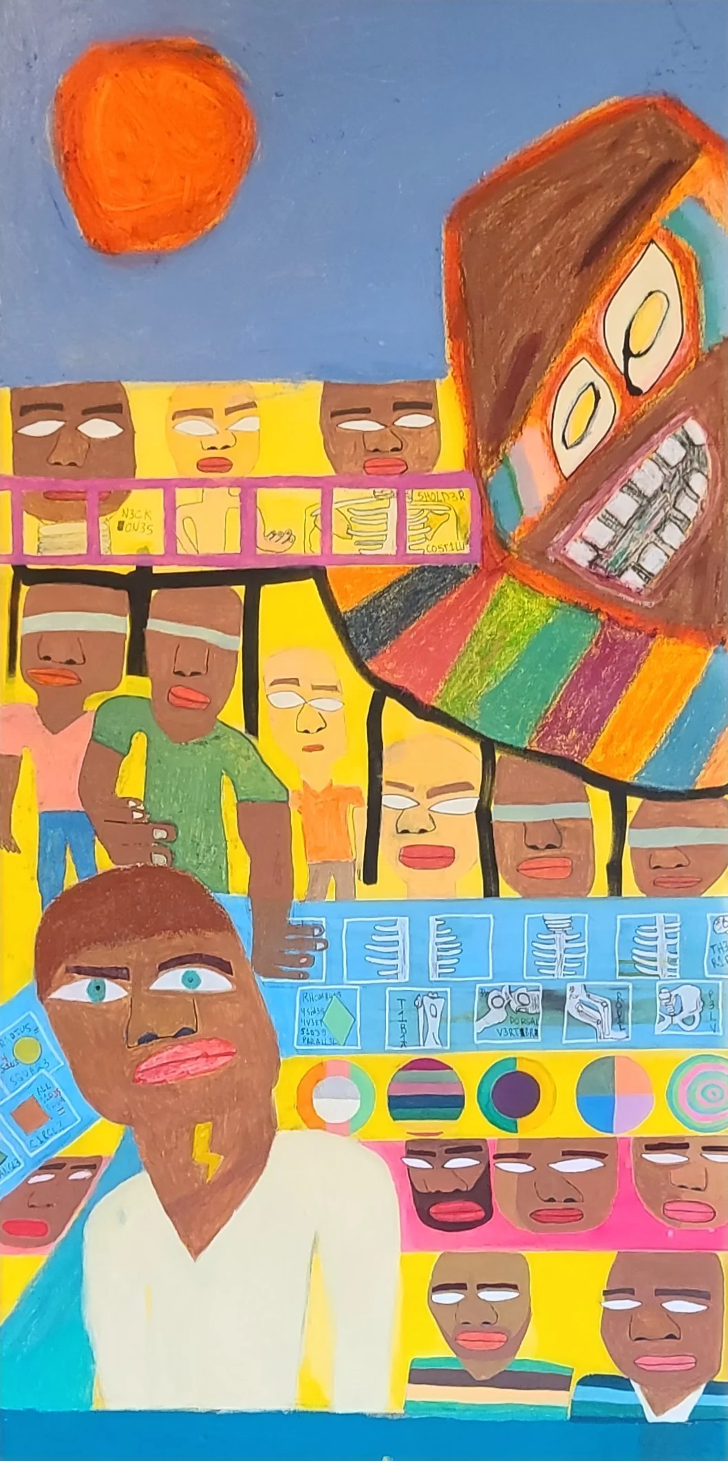 Oil, acrylic, ink, oil pastel on canvas
